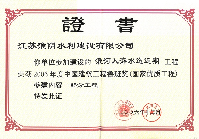 2006年度獲“中國建筑工程魯班獎(jiǎng)”;2007年獲“中國水利工程優(yōu)質(zhì)(大禹)獎(jiǎng)”;2009年獲“新中國成立六十周年百項(xiàng)經(jīng)典暨精品工程”獎(jiǎng)。